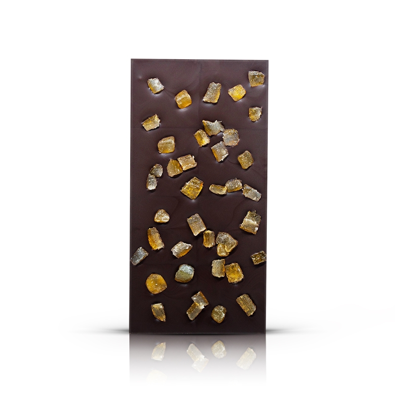 Dark chocolat (70%), candied lemon peels, candied ginger.