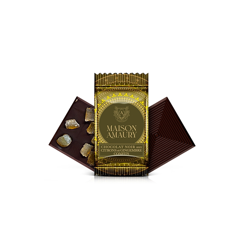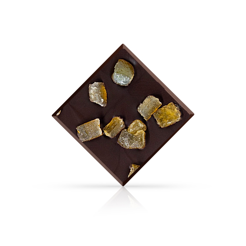 Neapolitan Dark Chocolate, Lemon & Ginger takes you on an exotic taste journey. Each square of this exquisite creation combines dark chocolate, rich in 70% cocoa, with candied lemon peel chips and candied ginger pieces, creating a symphony of exotic flavors. Accompanied by a revitalizing lemon and ginger tea or a full-bodied coffee, this Neapolitan invites you to an intoxicating taste experience, perfect for moments of relaxation and delight.