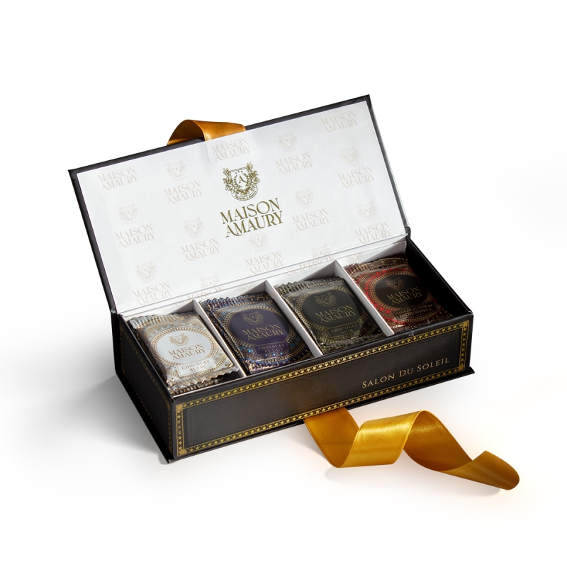 A symphony of flavors ranging from creamy white chocolate to the intensity of 70% dark chocolate. Each square embodies the art of chocolate, providing a delightful experience in an elegant setting.
