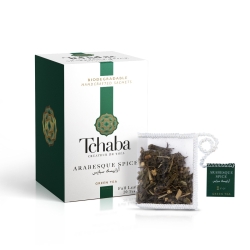 Arabesque Spice tea is a blend of green tea, ginger and lemongrass that offers a slightly yellow-green infusion.