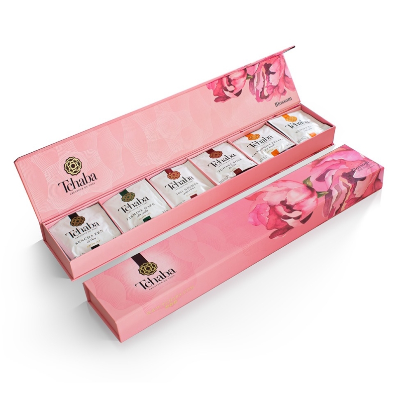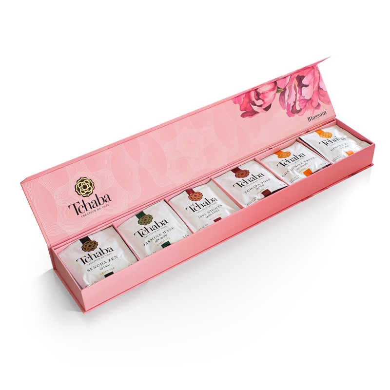 Let yourself be carried away by the enchantment with the 'Blossom Elixir,' an exquisite box that reveals a carefully curated selection of Tchaba teas. Each of these teas offers enchanting and harmonious notes, creating a unique sensory experience. To extend this magical experience, the box is available in two sizes: 30 tea bags and 63 tea bags, offering more pleasure and numerous opportunities to share these delights.