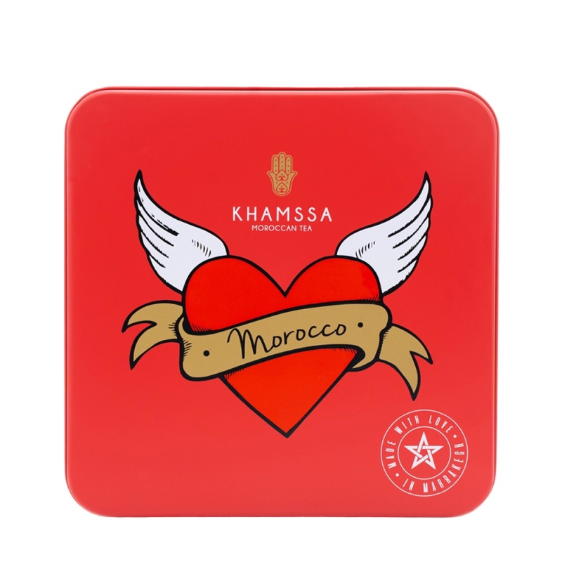 The "Love Morocco" box is a perfect souvenir of Morocco for all tea lovers. This metal cabinet with a modern design is available in two vibrant colors: pink and red. Inside, you will find 9 small tea boxes, each containing 5 tea bags, for a total of 45 tea bags.