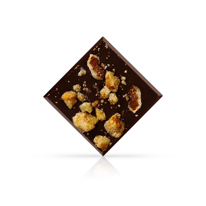 Napolitain Chocolat Noir aux Noix vous emmène au cœur de la gourmandise. Façonné avec expertise dans nos ateliers, chaque carré incarne l'alliance parfaite entre le chocolat noir, avec une teneur de 70% de cacao, et la texture croquante et le goût subtil des noix.