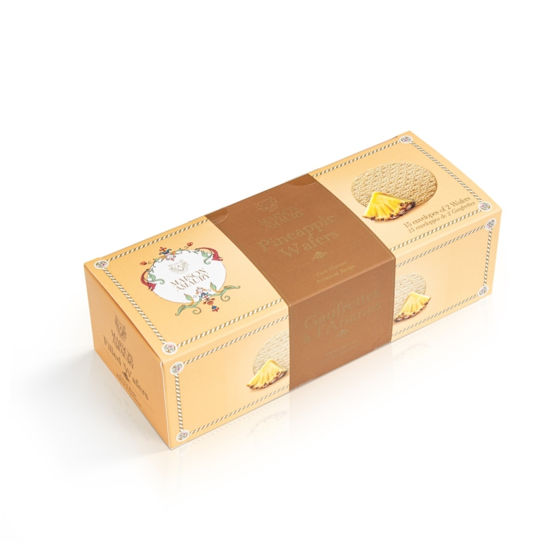 Ananas : Gaufrettes légères à l’ananas, alliant la fraîcheur fruitée du fruit à une texture délicatement croustillante, soigneusement réunies dans une boîte de 30 pièces.
