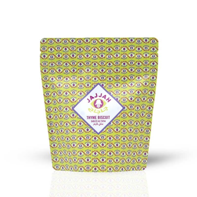 Salaaaaam ! Bienvenue ! Viens, assieds-toi & partage un biscuit salé au thym avec nous. Savoure nos sablés avec du thé ou café , conçus à Sidi Ghanem Marrakech avec amour Sa7a ! (Profite !).