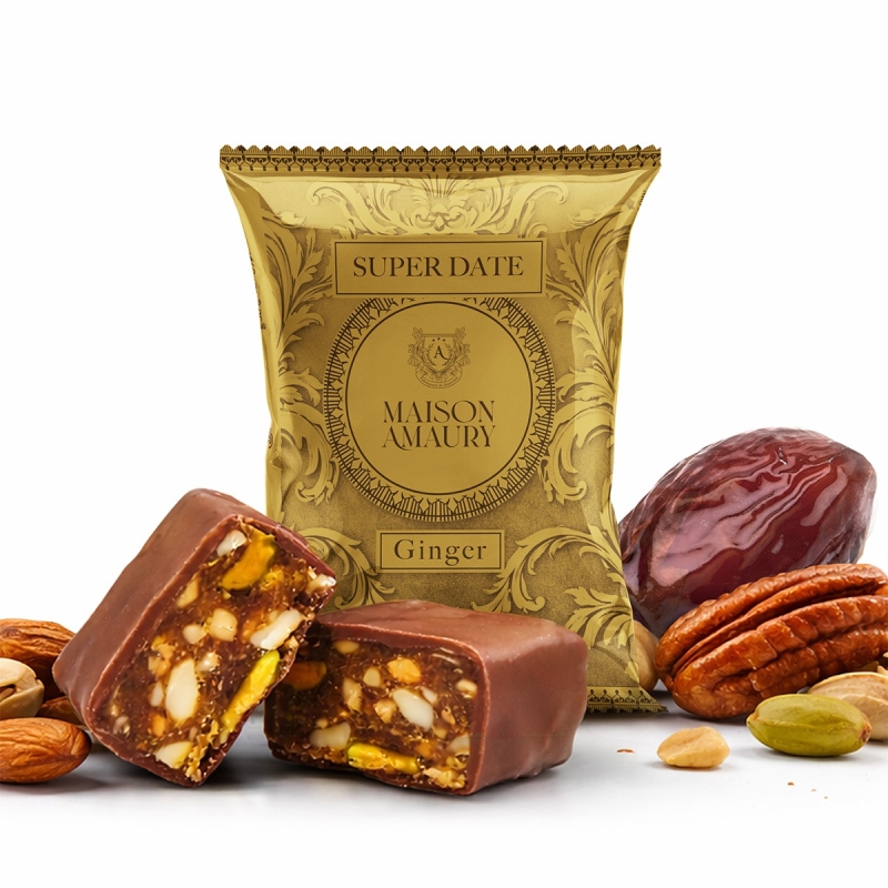 • Saveurs :Dattes Mejhool, miel au gingembre, amandes, pistaches et noix de pécan.